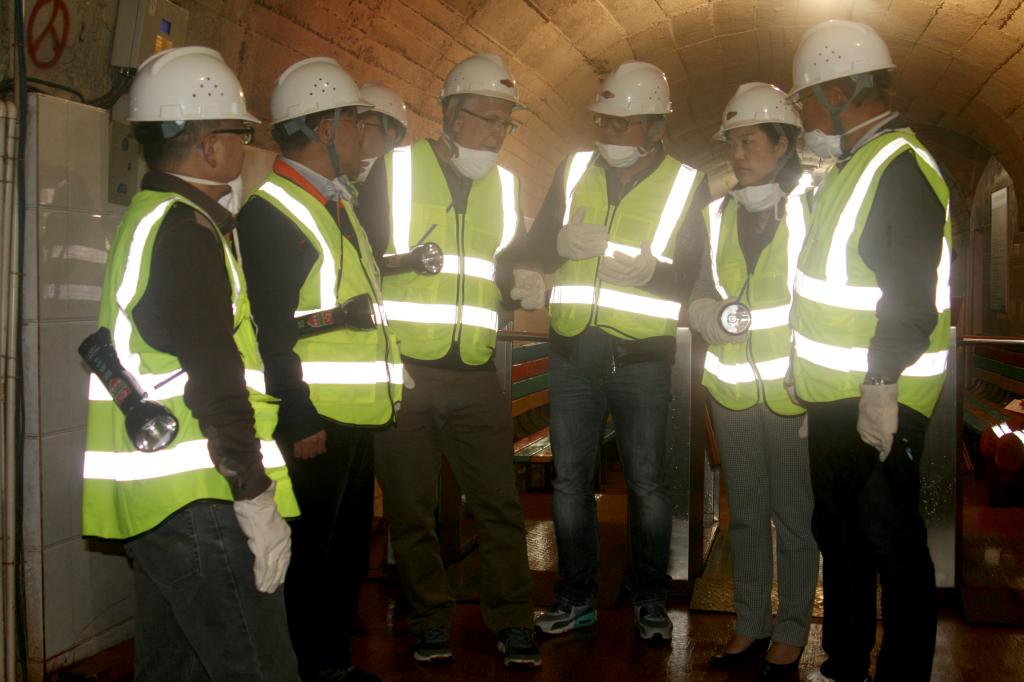 下午,在楊奕敏等領導的陪同下,大衛·畢肖普先生一行到大屯錫礦1360工業區參觀考察,通過觀看企業宣傳片對大屯錫礦有了初步了解;隨后,乘坐電瓶車深入千米地層下的三號輔助盲豎井進行實地參觀考察,了解云錫目前的礦山裝備水平和生產狀況。