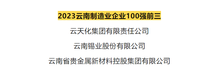 錫業股份位列2023云南制造業企業100強、2023云南高新技術企業100強前三