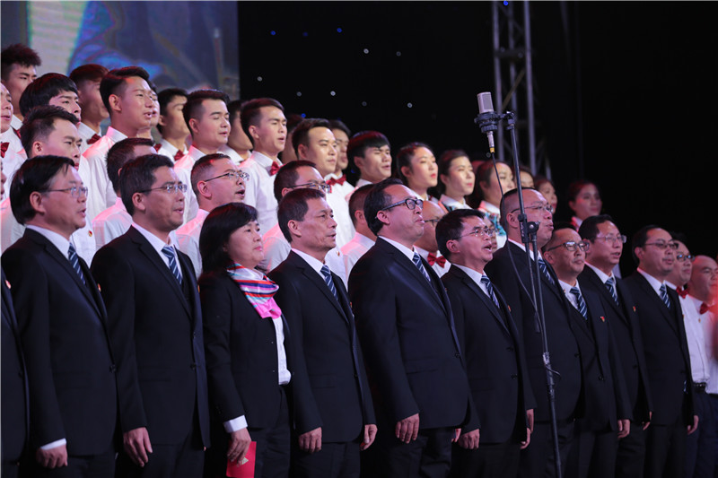 晚會在舞蹈《光榮與夢想》中拉開了序幕,隨著音樂節(jié)奏的加快,青春洋溢的舞蹈、說唱、民族舞表演、詩歌朗誦、才藝展示等節(jié)目,把整個晚會的氣氛推向一個又一個高潮。臺下觀眾掌聲如潮,匯成一片青春和歡樂的海洋。晚會在百人大合唱《我們是鋅銦人》《云錫之魂》《祖國不會忘記》中圓滿落下帷幕。晚會最后,牛輝帶領(lǐng)兩家公司黨政領(lǐng)導(dǎo)班子、部分管理干部及全體演職人員舉行了“為2019生存發(fā)展而戰(zhàn)”的宣誓儀式。