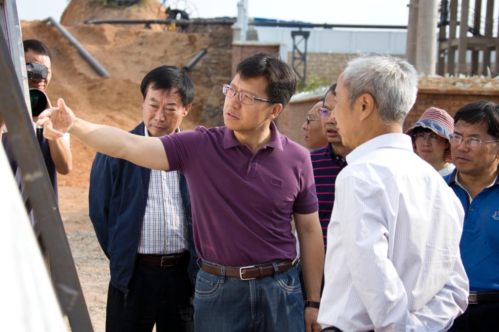 在大屯錫礦花墳尾礦庫二次濃縮站,李剛向姚國華一行介紹了花墳尾礦庫二次濃縮站的分布和各種設備設施功能等情況。目前,北部工業園區建設已經進入收官階段,三道水民營選礦廠通電、通水、通路和場地平整等工程基本完成,重點項目花墳尾礦庫已進入試車前的準備工作。