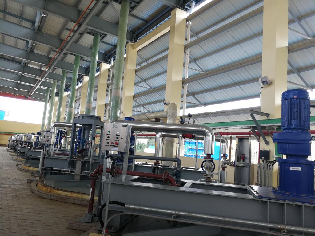 通過近兩年的艱苦努力,2018年春節前,項目進入土建收尾和設備安裝沖刺階段。為確保項目建設按進度計劃推進,控股公司、錫業股份建立了項目月例會制度,由兩級公司分管領導和相關職能部門負責人每月到現場召開會議,檢查落實項目進度,分析存在問題,協調解決過程中遇到的困難。云錫文山鋅銦冶煉公司認真貫徹兩級公司指示要求,緊緊圍繞試車投產及生產經營目標任務,持續優化完善投料試生產前的“人、機、料、法、環”和“產、供、銷”等各項試生產準備工作。通過上下攜同推進,項目的主要設備全部完成安裝和單體調試,各個系統先后完成投料試生產的各項準備工作:渣處理系統和硫酸水處理系統于6月25日完成跨車間聯動試車,75㎡渣處理爐于7月9日實現點火烘爐;109㎡沸騰焙燒爐于7月20日實現點火烘爐;浸出、成品和銦回收三個車間進入系統帶水聯動;工藝核心關鍵工序加壓除鐵車間于7月4日完成配酸進入冷水調試;各車間進行空負荷帶水跨車間聯動。8月27日,項目指揮部傳來全司上下共同期待的消息——項目排污許可證終于獲批。8月30日,硫鐵精礦沸騰焙燒爐實現投料試生產,各個系統全面進入熱負荷聯動試車。項目達產達標指日可待!