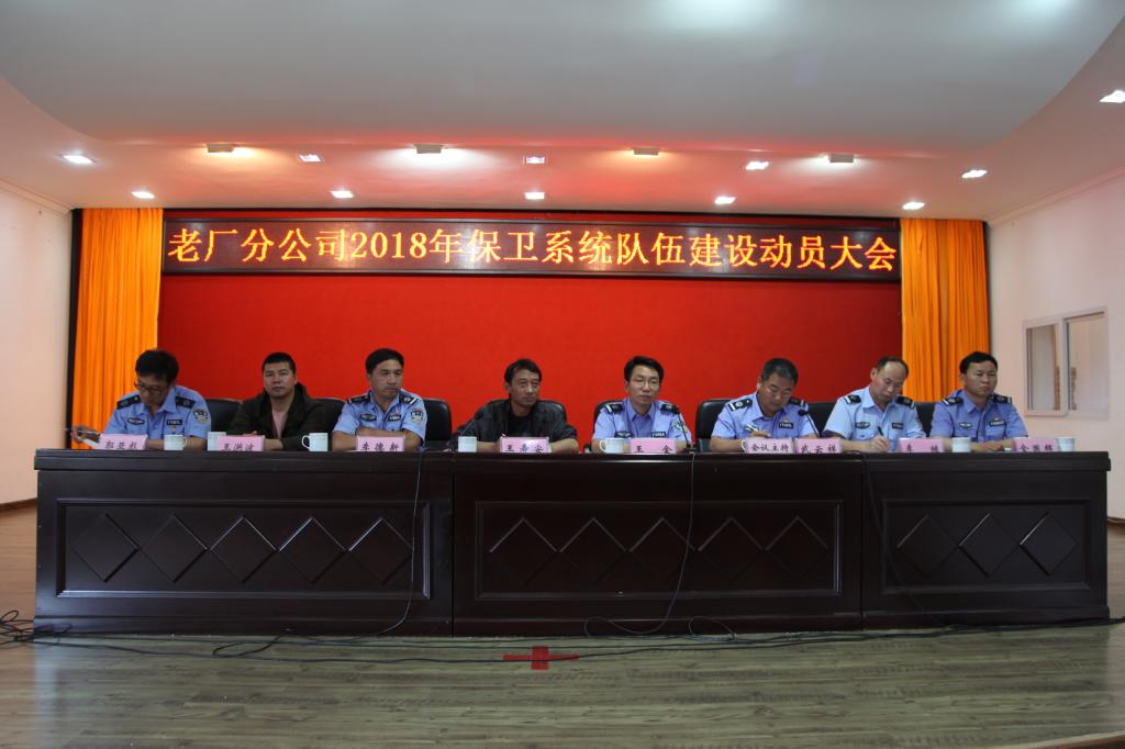 老廠分公司保衛部黨支部書記武云祥宣讀《2018年老廠分公司治安保衛隊伍建設實施方案》;保衛部主任李德新對保衛系統人員提出工作要求;各坑口、車間保衛股長、隊長作護廠護礦工作述職。
