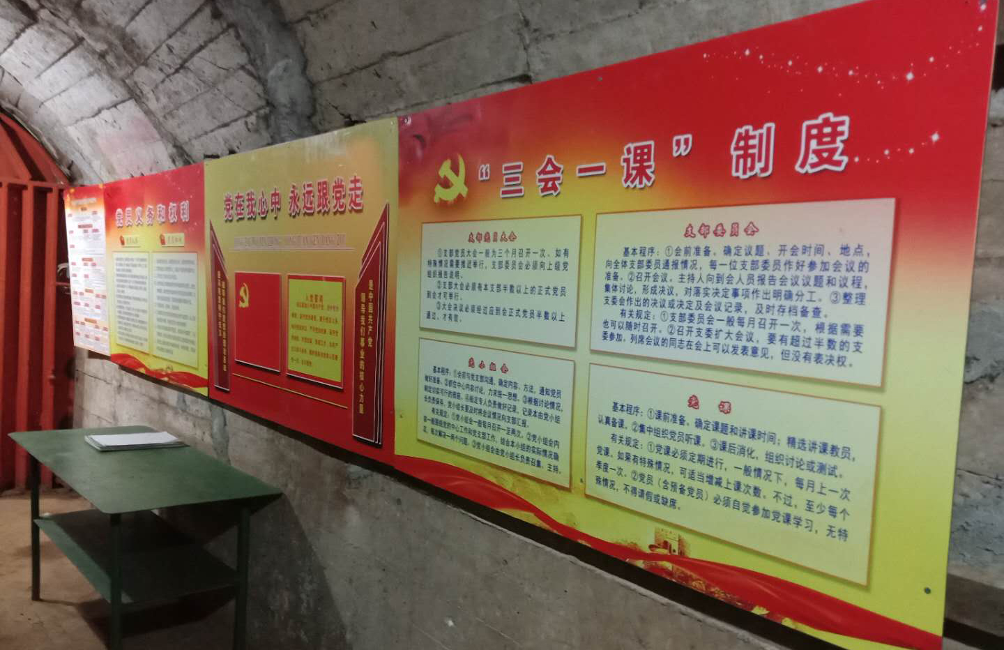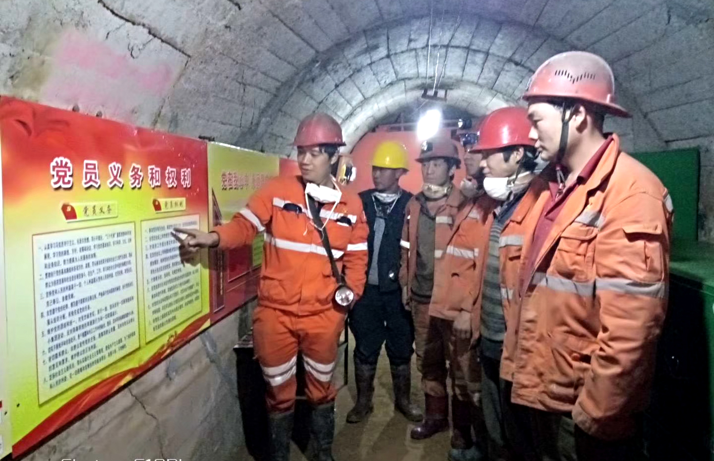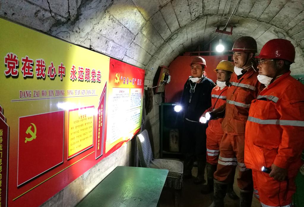 在提升改造后的“黨員學習陣地”內,有著整齊干凈的學習休息環境,配有熱水熱茶。內設有黨報黨刊、黨建讀物,墻上掛有入黨誓詞、黨員義務和權利、“三會一課”制度、黨員積分制公示欄等牌匾;還有著排列整齊的各種操作規程、崗位職責、班組隱患整改、違章整治、上班人員定位系統管理等內容,以及安全交接工作記錄、班組工具箱、與地面聯系座機電話和愛心小藥箱等。它既是一間礦山基層黨建工作和班組規范管理的展覽室,更是長期工作在井下一線的黨員及員工們暖意融融的“家”。