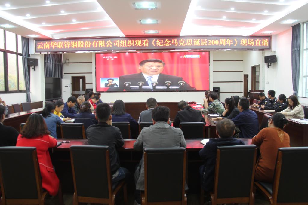 華聯(lián)鋅銦公司黨委組織150余名干部員工在公司五樓會議室及各車間會議室集中收看紀念馬克思誕辰200周年大會直播,在認真聆聽習(xí)近平總書記重要講話后,廣大黨員干部群眾備受鼓舞,紛紛表示,在以后的工作中,將切實把習(xí)近平總書記重要講話精神貫穿到各項工作中去,進一步增強“四個意識”,堅定“四個自信”,不斷增強責任意識,立足本職,為公司下一步的發(fā)展貢獻自己的力量。(張引娣)